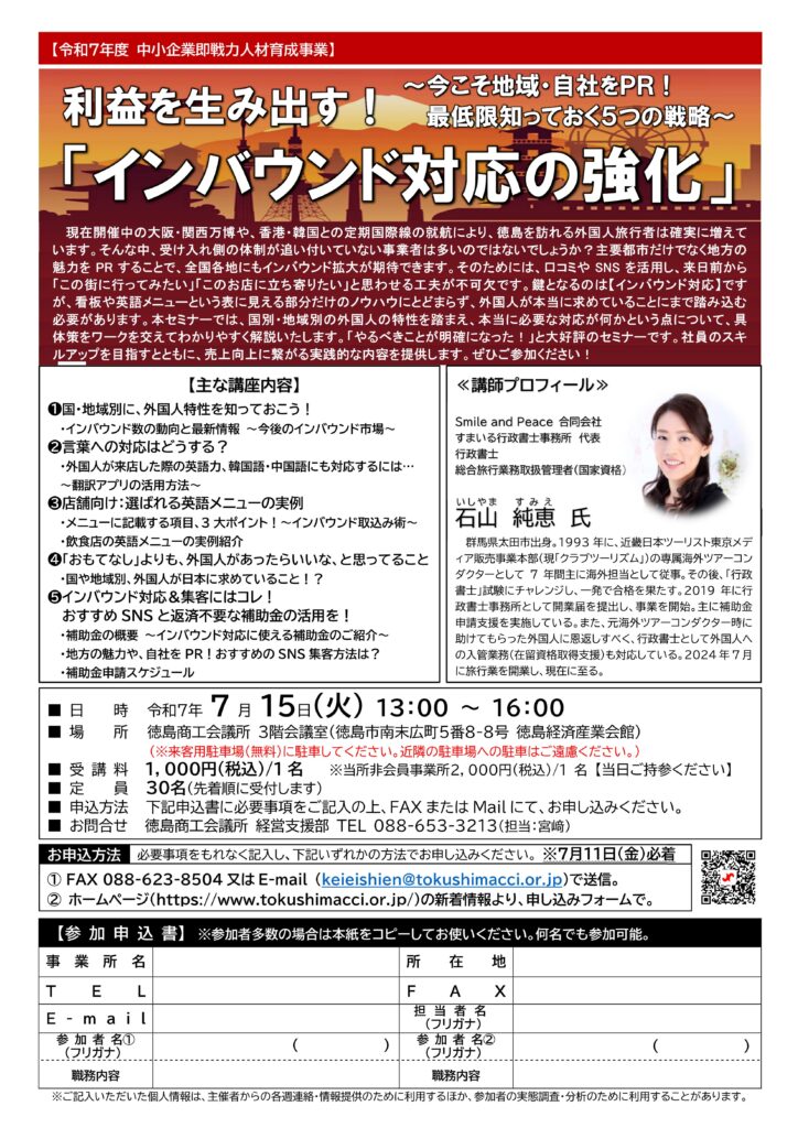 【7月15日】利益を生み出す!「インバウンド対応の強化」セミナーのご案内2025年05月14日