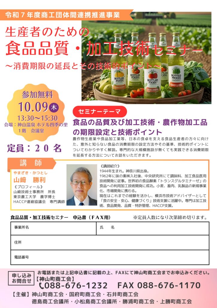 【10月9日】生産者のための「食品品質・加工技術セミナー」のご案内2025年09月01日