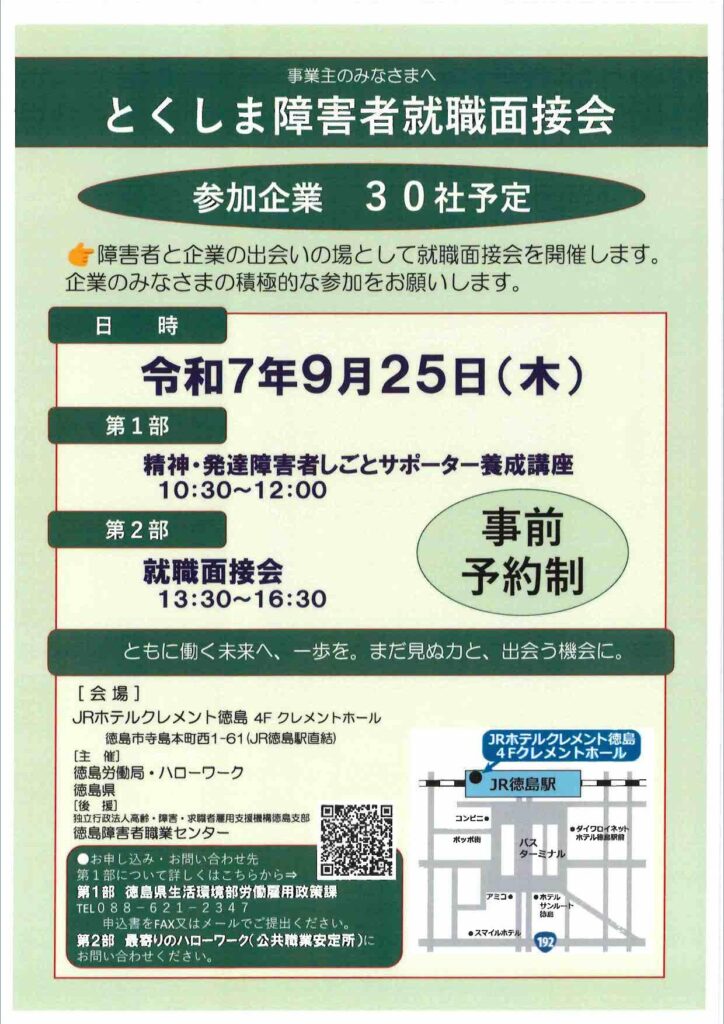 徳島商工会議所 > 関係機関からのお知らせ > 「とくしま障害者就職面接会」のご案内(徳島労働局)