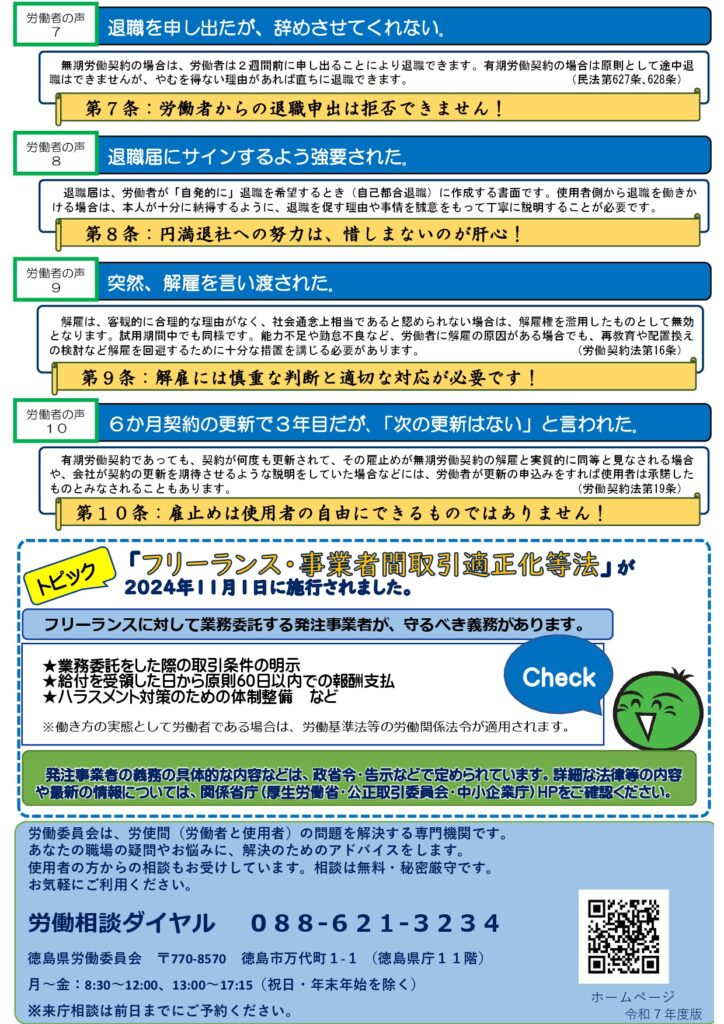 使用者(経営者)の皆様へ…「労使トラブル防止10か条」(令和7年度版)ができました(徳島県労働委員会)2025年08月19日
