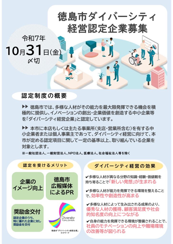 【徳島市】「ダイバーシティ経営」取り組み支援にかかる広報について2025年09月02日