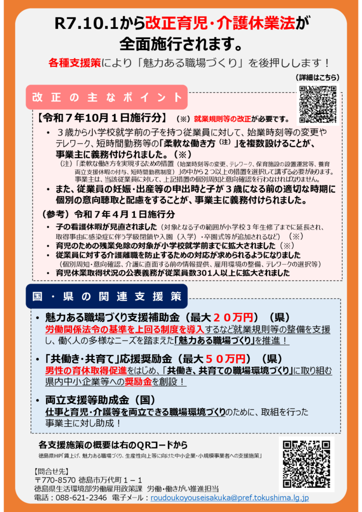 【徳島県】改正育児・介護休業法の施行および各種支援策について2025年10月06日