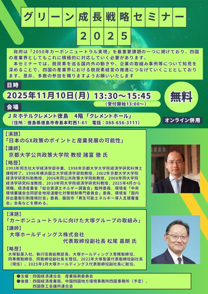 【四国経済連合会】11月10日(月)「グリーン成長戦略セミナー2025」のご案内2025年10月14日