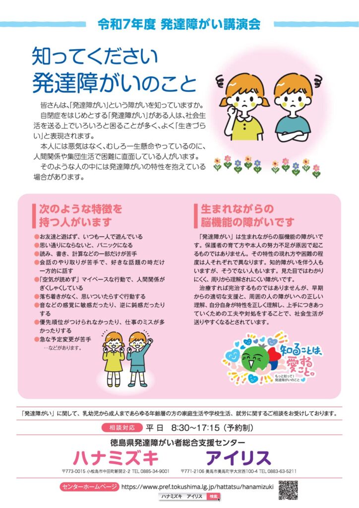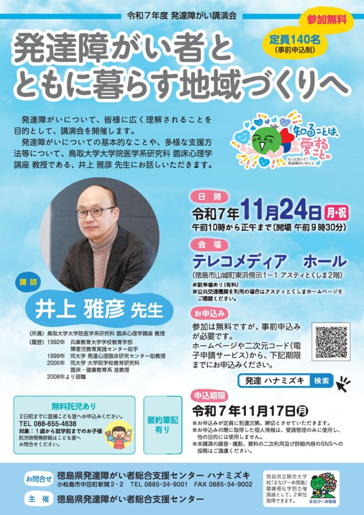 【徳島県発達障がい者総合支援センター】令和7年度発達障がい講演会のご案内2025年10月21日