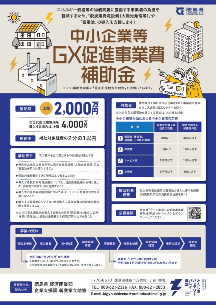 徳島商工会議所 > 関係機関からのお知らせ > 【徳島県】「中小企業等GX促進事業費補助金」の募集について