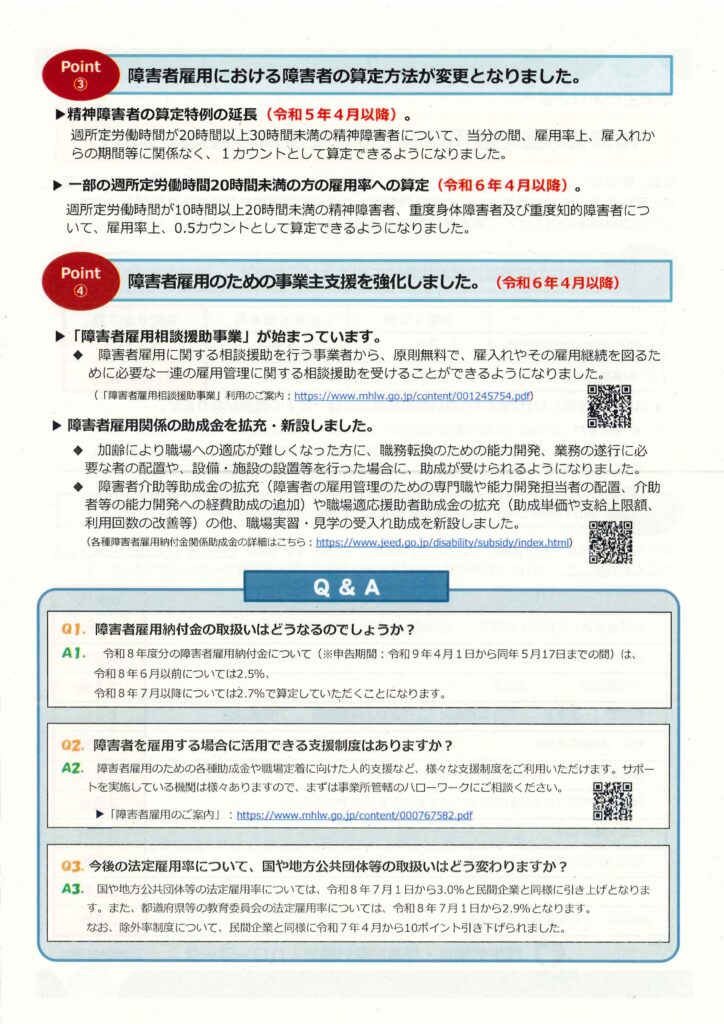 リーフレット「障害者の法定雇用率引き上げと支援策強化」